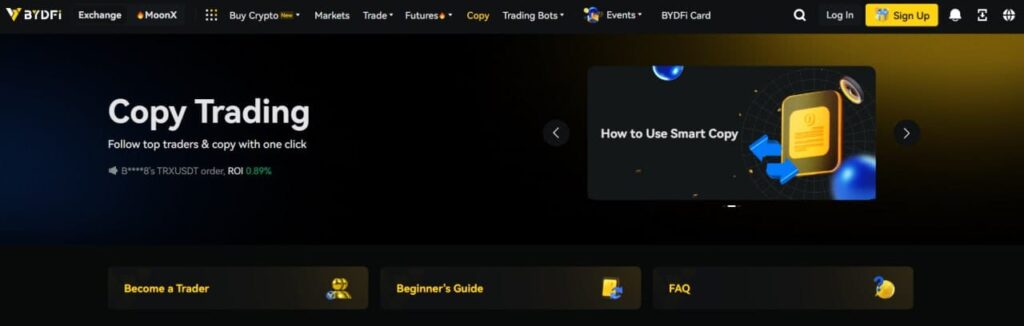 - Select the Platform. Your first step is to choose a platform with copies of trading capabilities. The most reliable exchanges, such as the BYDFi trading, offer user-friendly interfaces as well as transparent information about traders that they use to follow.